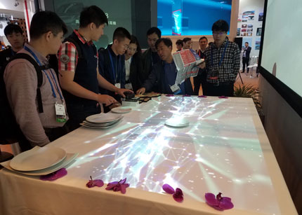 在創新技術領域中,奧圖碼領先的移動跟隨投影技術也在展會中與用戶見面,作為已在大量酒店、展覽館、餐廳、藝術展等場景中應用的成熟技術,奧圖碼移動跟隨投影解決方案提供了生動有趣的動態投影交互體驗,在浪漫餐廳、個性藝術館中,由奧圖碼技術帶來的逼真情景,實現了投影領域的全新突破。