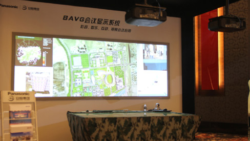 本套系統由兩臺松下PT-SLZ77C運用融合技術打造而成,觸控桌面通過數據處理和圖形同步計算,實現全圖三維模擬,使現場觀眾感受影像動態展示,領略圖像原態和多種特效,畫面清晰,具有超強的視覺沖擊力,該系統也可與BAVG大屏顯示系統結合做成互動數字沙盤應用。 |
