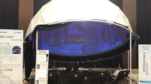 沉浸式球幕影院,是目前國際上較為新穎的展示方式,主要應用于科普、娛樂項目等。它集成了多種現代視聽先進技術,為觀眾提供了不同以往的視覺震撼,擺脫了平面視覺的束縛,使影視空間和現實空間更為接近,配合影片同步的動感和豐富的特效效果,極大的增強了觀看影片的臨場感和真實感。松下固態光源投影機PT-FRZ30C采用LED/激光光源,可以實現20,000小時免維護,配合球幕影院系統,效果突出。 |