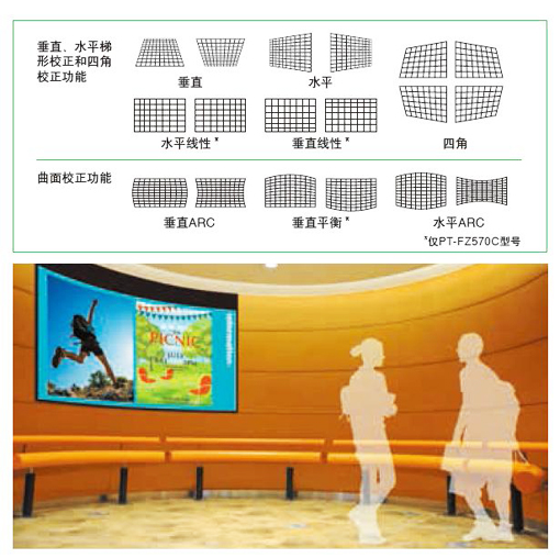 PT-FZ570C系列投影機節能模式下燈泡的更換周期延長至8000小時,防塵外殼采用雙層ECO過濾網,具有可水洗等特點,使用16000小時無需更換。可通過遙控器上的ECO按鈕進行“節能管理模式”設置。其中包括根據周圍的光線調整投影機的亮度以及在未檢測到信號輸入時降低燈泡功率,節能模式下運行噪聲可低至29dB。使用1.8倍變焦鏡頭,實現了在不同環境和不同尺寸屏幕投影的靈活性。垂直/水平梯形校正和四角校正功能能夠調整圖像至理想形狀,以獲得清晰的圖像。曲面校正功能允許在曲面形狀或圓柱狀上投影自然、無失真圖像。