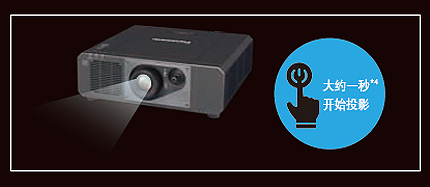 激光光源無需預熱時間,PT-FRZ570C投影機幾乎可以達到開機即刻成像(大約一秒鐘*3)。關機后也無須進行冷卻。用戶可根據需求連續多次開/關投影機。