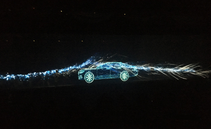 在發布會的現場閃耀無比,24臺松下激光工程投影機PT-SRZ12KC采用融和的方式展現20米×5米超大畫面,12000流明高亮度影像呈現在紗幕上,實現夢幻的全息影像,帶給觀眾身臨其境之感,真正體驗了與全新S90長軸距豪華轎車親密接觸,可以清晰欣賞到車身的每一處細節。
