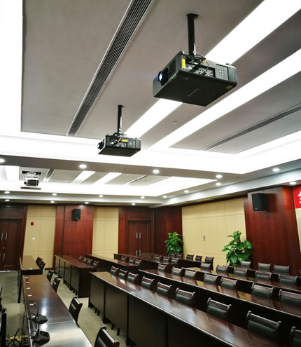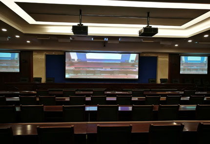 江西省公安廳是江西省人民政府主管全省公安工作的組成部門,下設多個辦公機構,共十八項主要職責,主要有貫徹執行國家法律、法規;擬訂全省公安工作的規定和實施辦法;對全省公安機關實施組織領導和指揮等等,公安廳的工作之繁忙、會議之多可見一斑,對投影機的要求也就十分“苛刻”。在江西省公安廳170人的會議室中,技術人員通過全方位的檢測和精密的亮度計算完成了本次投影機改造項目,最終應用了兩臺松下激光投影機--PT-FRZ98CL,采用正投吊裝融合的方式為辦公會議增加投影屏幕的亮度和清晰度,使得每次會議都能便捷高效地進行。