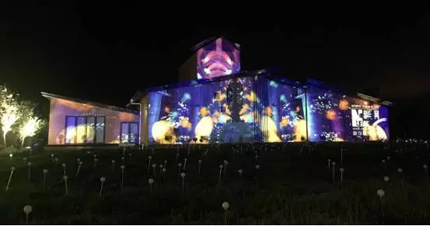 點亮工程在撫仙湖畔正式啟動,湖邊的樓體、樹木、薰衣草園是主要的亮化區域。照片中所拍攝的絢麗的樓體,高6.5米,總寬度32米,項目僅僅應用了10臺10,000流明的松下激光光源工程投影機PT-FRX110C就輕松達到了預期效果,成像面積高達208平方米!效果非常震撼。此次光影秀采用先進的大型戶外投影技術,在建筑表面投射立體感十足的三維動態畫面,配合薰衣草園、樹木的燈光裝點,營造出一個童話般浪漫的動人場景。