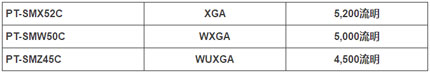 PT-SMZ45C亮度為4,500流明,PT-SMW50C亮度為5,000流明,PT-SMX52C亮度為5,200流明。