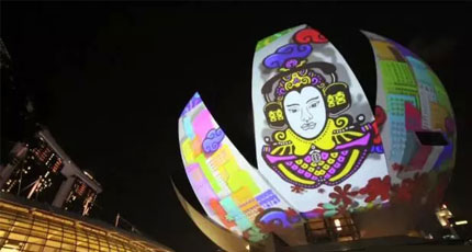 新加坡藝術家用松下PT-SDZ21KC在濱海灣標志性建筑藝術科技博物館外墻打造巨型藝術作品... >>