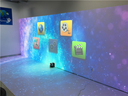 互動廣告墻體驗高端投影技術--松下走進成都萬達 萬達影城互動廣告墻可實現用手指操控整個觸摸屏上的畫面。松下PT-FDZ675智能色彩控制技術...