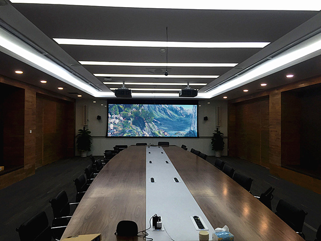 松下投影機深圳平安證券多媒體會議室應用 PT-FDW73C以吊裝正投方式安裝在頂棚上方,6300lm在明亮的環境中也能呈現出高清晰度...