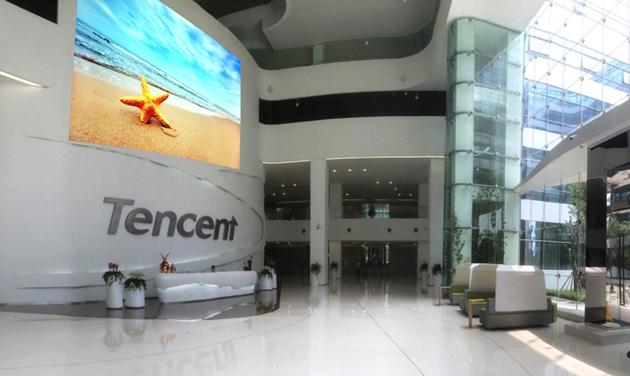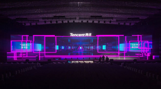 松下激光工程投影機打造成都騰訊大廈大廳背景墻 成都騰訊大廈大廳背景墻采用四臺松下激光工程投影PT-FRZ98C...