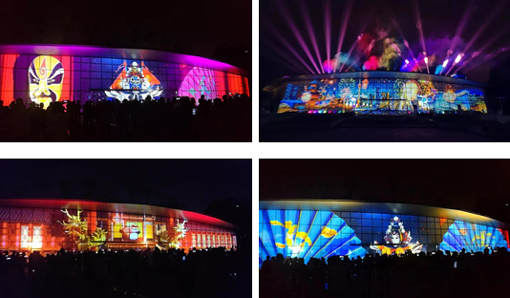 閃亮樓體,松下工程投影機炫彩成都天府芙蓉園 成都天府芙蓉園游客中心墻體秀使用了4臺31,000流明的松下激光光源工程投影機PT-SRZ31KC...