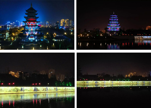 松下工程投影機打造遂寧燈光秀 項使用8臺松下激光光源工程投影機PT-SRS30KC對臨仙閣的兩個塔面進行投射...