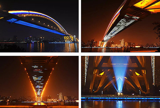 盧浦大橋燈光秀,松下工程投影機點亮魔都夜景 項目使用20臺31,000流明的松下激光工程投影機PT-SRZ31KC...