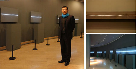 2012年中國美術館迎來了一場重量級的展覽--《譚平個展:|劃》。在展覽上,譚平以藝術的全球觀念,運用抽象藝術語言的鏈接,創造了東方、西方不同文化在同一時空中的精彩聚匯。展覽中最重要的作品《+40m》,正是運用了25臺理光超短焦投影機PJ