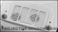 散熱和防塵設計一直也是三星商教機型最花心思之處,在L331身上,最值得稱道的就是之前我們曾反復提到的雙渦輪扇排風系統。與較為普遍的側面風扇送風不同,L331的兩個渦輪風扇被巧妙地設計在了機身的底部,其中的一個司職為機身內部的元器件送風降溫,另一個司職專為燈泡降溫,由這二者產生的強勁風力,通過出風口可以迅速將L331在使用過程中產生的熱量迅速帶走,從而使整機可以長時間可靠的運行,這一點對于經常、并且需要長時間進行投影演示的企業和學校而言,顯得尤為關鍵。其次,在L331的雙渦輪風扇上,還覆蓋有采用特殊材質制成的過濾網,它可以對風扇高速運轉時,揚起的細微灰塵進行有效過濾,減少灰塵對機器內部重要部件及燈泡的侵蝕,這更進一步提高了機器運行時的穩定性。