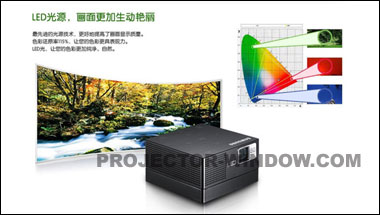 H03采用了壽命高達30000小時以上的LED作為光源,既做到了節能環保,又可以為我們的后期使用和維護節省更多的開支,非常劃算。H03的亮度、分辨率分別為30流明,和854×480像素,