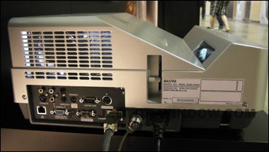 本次展會上,SANYO展示了號稱目前焦距最短的3D-Ready投影機,采用反射式投影技術,可以在32厘米投影80英寸畫面。目前3D-Ready投影機主要采用正投方式,配備短焦鏡頭配合應用環境。這款新產品具有WXGA分辨率,2500lm亮度。其為3D投影提供更廣泛的應用空間,未來在反射式短焦投影機應用領域,如教育投影、地面投影、櫥窗投影以及桌面投影等等方面,都可以展現3D效果,無論是娛樂還是教學,其表現都令人期待。