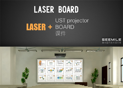 Board,這是一套由純激光光源超短焦投影機、互動模塊、紅外互動筆、計算機和特制可書寫式交互式白板組成的全新互動教學(xué)解決方案。大畫面是投影的最大優(yōu)勢,視美樂Laser