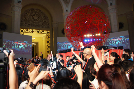 25日晚,上海展覽中心,王小慧的大型行為藝術正式啟動。視美樂出動八臺激光工程機,與王小慧一起“尋找我們的視覺日記”!500位嘉賓同時舉起象征鏈接的紅繩,記錄當下的視覺日記。本次活動通過各種互聯網傳播渠道,覆蓋幾千萬人,創造了互聯網傳播的新模式。