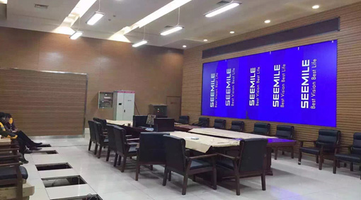 用戶環境為背投距離1.8米的狹小空間,但要實現2.4*5.4米的高清顯示大屏。因此選用SML-PF500投影機,配合定制光學屏幕、1.0-1.7的變焦鏡頭,清晰的將每一個監控畫面完美的顯示在指揮人員的眼中。