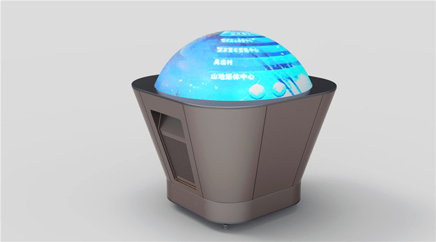 該項目采用的是直徑80厘米的半球形顯示器,突破了傳統(tǒng)的平面顯示方式,新穎別致的元寶造型抓住了體驗者眼球。內置的視美樂激光投影機(SML-PF500)保證了顯示畫面亮度高、清晰度高,極大地優(yōu)化了用戶體驗。