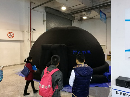 擁有獨特外形的屏幕,播放非常規(guī)尺寸的影片,給你帶來突破傳統視覺效果的奇特觀看體驗。移動球幕影院—依靠充氣原理,采用進出排風系統。利用內投球成像技術,將畫面投影在整個球幕內壁,當觀眾進入移動球幕影院內,將看到一個360度全方位立體影像,進入一個虛幻、奇妙的世界。