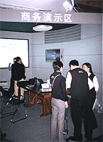 為了提高辦公效率,Sony演示了一個(gè)配備有網(wǎng)絡(luò)投影機(jī)VPL-FX50和具有網(wǎng)絡(luò)功能的等離子顯示器PFM-42B1E的現(xiàn)代化辦公環(huán)境。在這里,你的演講實(shí)現(xiàn)網(wǎng)絡(luò)功能并無(wú)需PC。通過(guò)局域網(wǎng)或廣域網(wǎng)系統(tǒng),人們可以在多個(gè)會(huì)議室之間舉行實(shí)時(shí)多媒體會(huì)議。交互式研討會(huì)的參與者們可以同時(shí)獲取相同的多媒體內(nèi)容來(lái)實(shí)現(xiàn)信息,觀點(diǎn)和數(shù)據(jù)的共享,從而提高工作效率。
