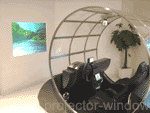 走進一樓大廳,一座極富太空感的銀色帳篷映入眼簾—這是展示Sony投影技術的“幻像隧道”。走入這個用16臺投影機,LCD,環繞式音響組成的大屏幕數碼通道,銀色的頂棚上投映著一副副精美的圖像,讓人置身于科幻世界。