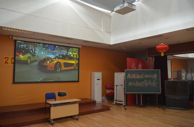北外教職工活動中心多功能演示大廳擁有足夠寬廣的建筑面積,屏幕尺寸設計在150英寸,投影機采用吊頂正投安裝,由于使用環境光線較為復雜,投影機需采用較高的亮度與分辨率參數,同時擁有簡單的鏡頭功能,初步選定4000流明亮度以上工程投影機。 |