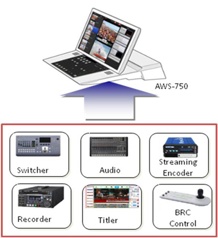 同時,AWS-750還具有其它強大功能,包括可以在一個背景畫面中再開兩個窗口(2個畫中畫),可疊加兩個徽標(學校可根據需要疊加自己的logo)還可上兩組字幕。