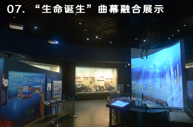 這套展項通過雙臺投影產品拼接融合成超大曲面顯示屏幕,通過這一頗具震撼效果的屏幕來向觀眾傳遞“生命的誕生”這一特殊的主題,曲面、高清高亮、逼真視頻效果以及沉浸感受成為這套系統的突出特點。系統運用了兩臺索尼高端工程投影機拼接融合而成,其中吊頂安裝、融合帶處理以及高畫質輸出等等技術特點使得這套展項更具示范意義,也更能體現多媒體投影系統的魅力與靈活。 |