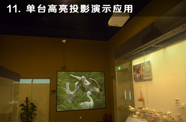 除了利用大面的墻壁作為投影幕布之外,只要能夠稍稍塞下幕布的地方,都能是投影顯示技術的用武之地。在展項一角,我們看到了一套簡單的投影系統。單臺投影吊頂安裝、常規屏幕懸掛于墻壁、短距離大畫面高亮輸出,即便是一個默默無聞的角落,一套簡單的投影系統能夠瞬間讓這里蓬蓽生輝,這套系統中反映出投影技術靈活、易用、便利的諸多特點,這或許就是投影的魅力所在。 |