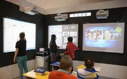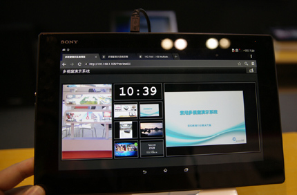 在本展區(qū)中,索尼以VP BOX多視窗演示系統(tǒng)為核心,配合三臺(tái)超短焦投影機(jī)及多臺(tái)云臺(tái)攝像機(jī),構(gòu)成了新型互動(dòng)教學(xué)環(huán)境。
