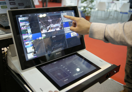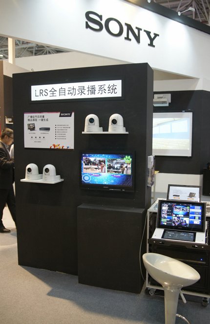 在本展區(qū)中,索尼展示了其創(chuàng)新的全自動(dòng)錄播系統(tǒng)。該系統(tǒng)由4臺(tái)SRG系列高清云臺(tái)攝像機(jī),配合AWS-750便攜式高清切換臺(tái)及自動(dòng)錄播控制主機(jī)等設(shè)備組成,支持全自動(dòng)和全手動(dòng)等工作方式,可以方便快捷地錄制出豐富多彩的課程節(jié)目。