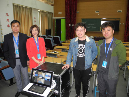 史友峰老師(右2)與調(diào)試設(shè)備的索尼工作人員合影