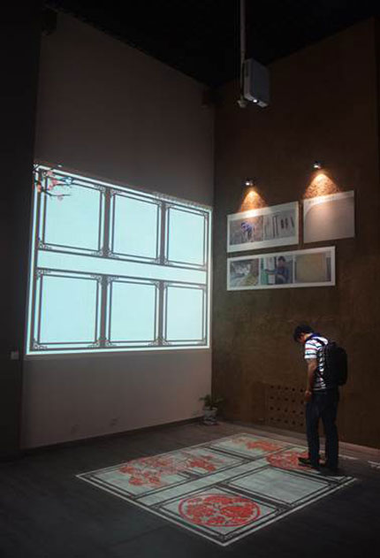 用兩臺VPL-F600X打造的墻面-地面互動投影系統,讓人們可以放松心情,進行一些娛樂游戲,比如貼窗花,人們只需要用腳踩在選中的剪紙上,剪紙就會從地面“飄到”墻面“窗戶”上。還有幾種不同的小游戲,來到這里的大人和小孩都可以輕松玩樂,這也是很好的寓教于樂的方式。
