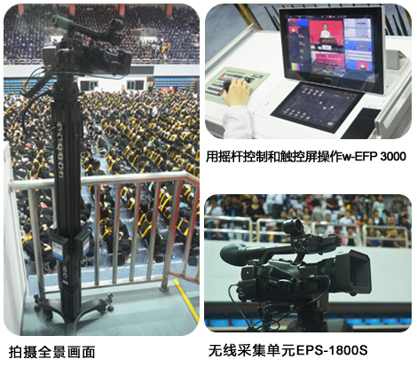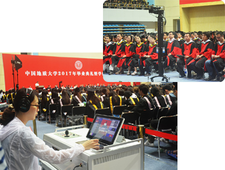 在會場一側的操作臺上,現場老師應用AWS-750觸控操作機位,并用搖桿控制攝像機鏡頭。無論是全景的震撼效果,還是學生表情特寫,都清楚地展現在監視器畫面上。得益于云臺的大角度移動范圍,典禮會場盡收眼底。現場老師獨自一人完成了鏡頭移動、對焦、變焦、機位切換、視頻錄制等工作。如果需要,還可以增加字幕以及后期特效等,應用直觀方便。