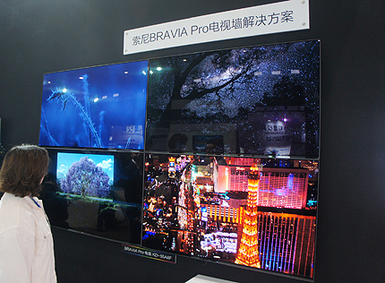 BRAVIA Pro電視墻解決方案,由4臺KD-55A8F 4K電視組成。KD-55A8F采用OLED面板,單臺擁有4K
