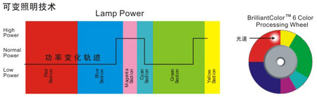 加賀PH系列數碼投影機,采用最新可變照明技術,投影燈泡功率隨分色輪的轉動而改變,使投影的色彩更加鮮活,色彩層次更加豐富,極大的提高了DLP投影機的色彩再現能力。