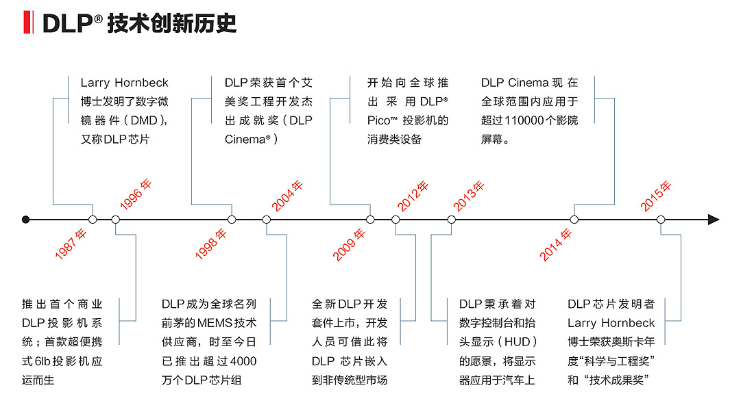 這種數字技術具有極高的可靠性和優異的拓展性,能在各類產品中提供極為優質的圖像效果,同時它是唯一能夠同時支持世界上最小的投影機(低于2-lbs)和最大的電影屏幕(超過100