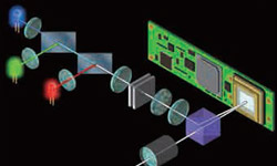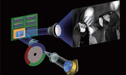 DLP是一種采用光學半導體產生數字式多光源顯示的解決方案,每一塊DLP芯片的核心是由微鏡所排成的陣列,它們以高達每秒上萬次的高速切換。影像信號經過數字處理,