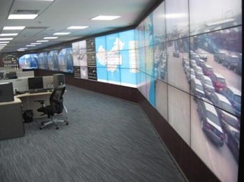 國內最長跨度拼接墻上汽集團監控墻OP4625 84臺3*28拼接 |