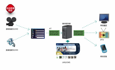 此外,通過系統搭載的H.264壓縮技術,還可將教師在講臺屏幕上的各項授課操作以及整個授課過程進行實時記錄保存,包括圖檔、PPT、流媒體播放、網頁瀏覽等操作,自動跟蹤攝像系統會將記錄內容自動生成MP4視頻文件,并全部自動上傳到多媒體服務器上,以便師生在家里使用數碼終端通過互聯網訪問媒體服務器上的教學資源。