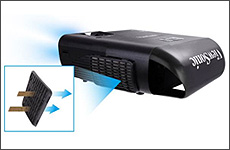 可拆式后蓋設計,延伸表面光射線,直達尾端,讓LightStream光艦投影機一體成型。內在理線實用功能,遮蔽后方過多接線與接頭。 |