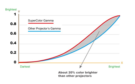近120%亮彩Gamma曲線,讓優派新一代投影機,色彩亮度超越一般投影機,亮出更多色彩層次