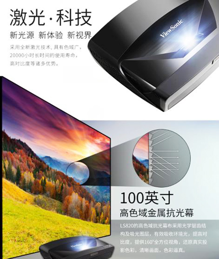 優派LS820激光電視秉承了優派多年來對視訊科技的專業堅持,匯聚了創新技術與主流性能于一身;相比普通百寸電視動則數十萬的高價位,優派激光系列電視價格電商有驚喜,真正將高性價比帶給更多家庭,以更炫麗、更省電、更護眼、更低價格的極致專業點燃了百吋電視的無限激情。