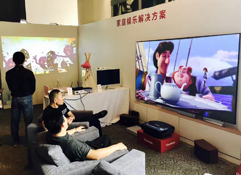 優(yōu)派在現(xiàn)場打造的家庭應用場景展示了豐富的投影機新品,激光電視與家用影音投影機帶來影院色域大師的卓越風姿,呈現(xiàn)百寸大屏的繽紛色彩。