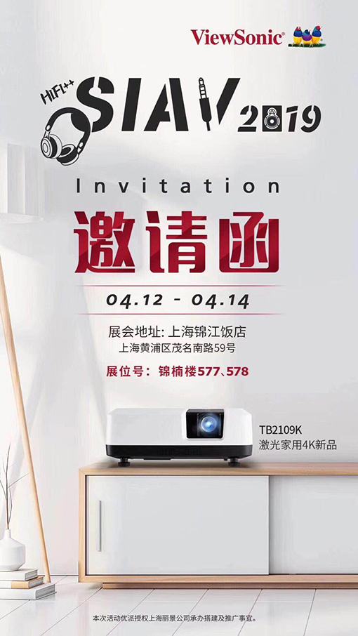 [投影之窗消息] 第二十七屆上海國(guó)際高級(jí)Hi-Fi演示會(huì),暨第四屆上海便攜移動(dòng)Hi-Fi展,于2019年4月12至14日,在上海錦江飯店內(nèi)盛大開(kāi)幕。優(yōu)派發(fā)布最新4K激光家用新產(chǎn)品:TB2109K。