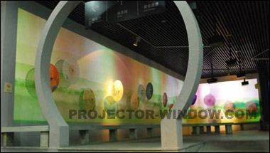 中國傘博物館中,多臺麗訊D5500拼接實現的唯美卷軸 |