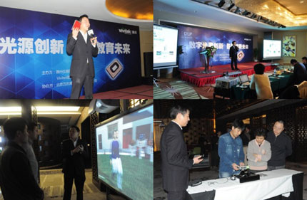 2012年12月14日,12月21日和28日, Vivitek麗訊與DLP走進了北京、昆明、蘭州。Vivitek麗訊技術人員向全體與會人員全面介紹了Vivitek麗訊,展示了品牌的宏觀定位、發展目標,以及歷年來在教育行業的動作與成就。在講解過程中,Vivitek麗訊相關人員向參會人員重點介紹了超短焦產品D795WT,這款產品可以緊貼墻壁投影97”畫面,是目前業界最短焦的投影機,對于教育行業用戶最大的利益是老師眼睛不再被投影光線照射,身體極少擋住投影內容,可以保護老師健康,不影響正常教學。