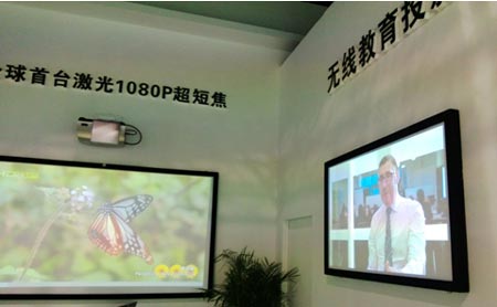 如果想在空間不大的教室內進行多媒體教學,傳統投影會給老師帶來無窮的煩惱。然而Vivitek麗訊為本次展會帶來的全球首款激光全高清超短焦教育投影卻可以一舉解決投影空間狹小、畫面不清晰、不適應光線明亮投影環境等諸多問題。